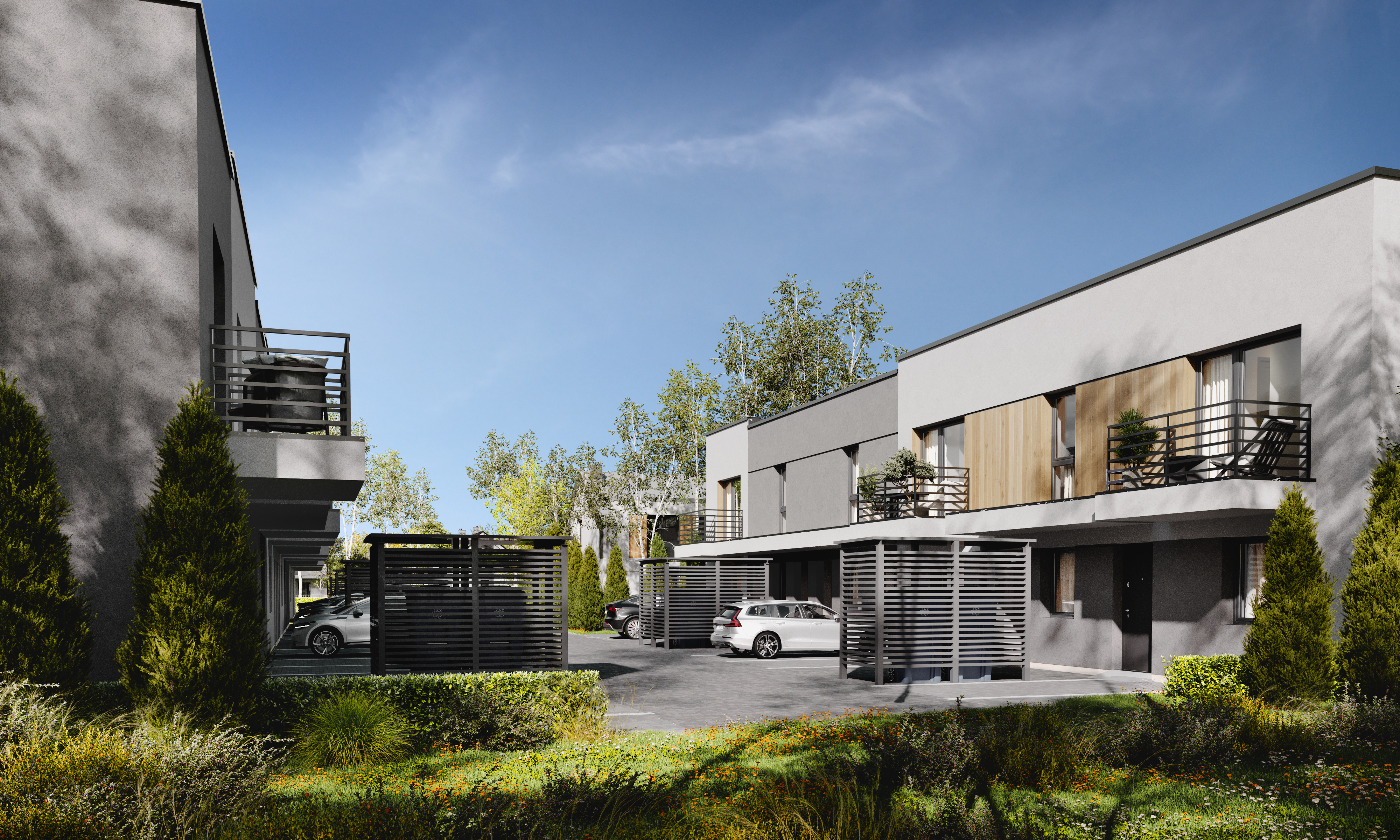 - zamknięte osiedle wyposażone w bramę wjazdową, oświetlenie ulicy, wiatki rowerowe